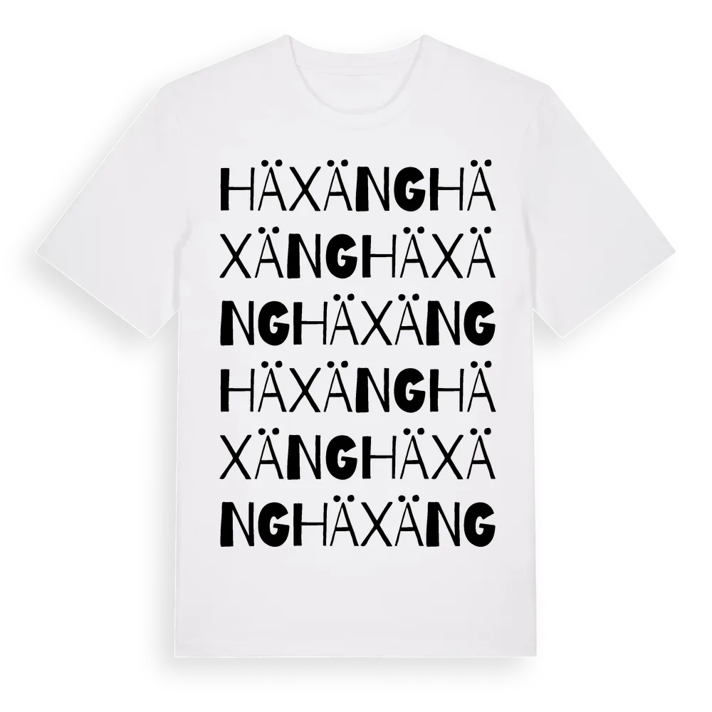 Häxäng ordlek t-shirt är inspirerad av Häxäng i Hallands län, Sverige. Tröjan är designad för dig som har en speciell koppling till platsen – oavsett om du bor här, har rötterna här eller bara älskar Häxäng.