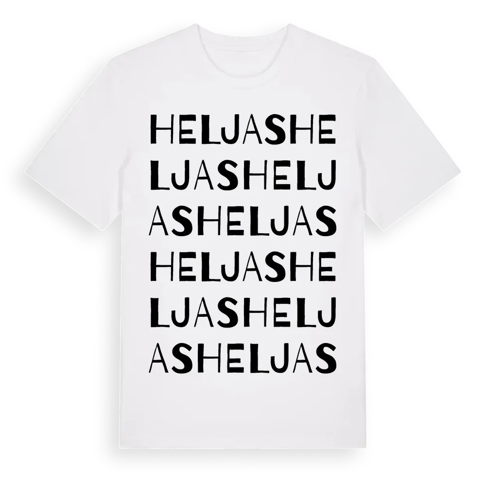 Heljas ordlek t-shirt är inspirerad av Heljas i Hallands län, Sverige. Tröjan är designad för dig som har en speciell koppling till platsen – oavsett om du bor här, har rötterna här eller bara älskar Heljas.