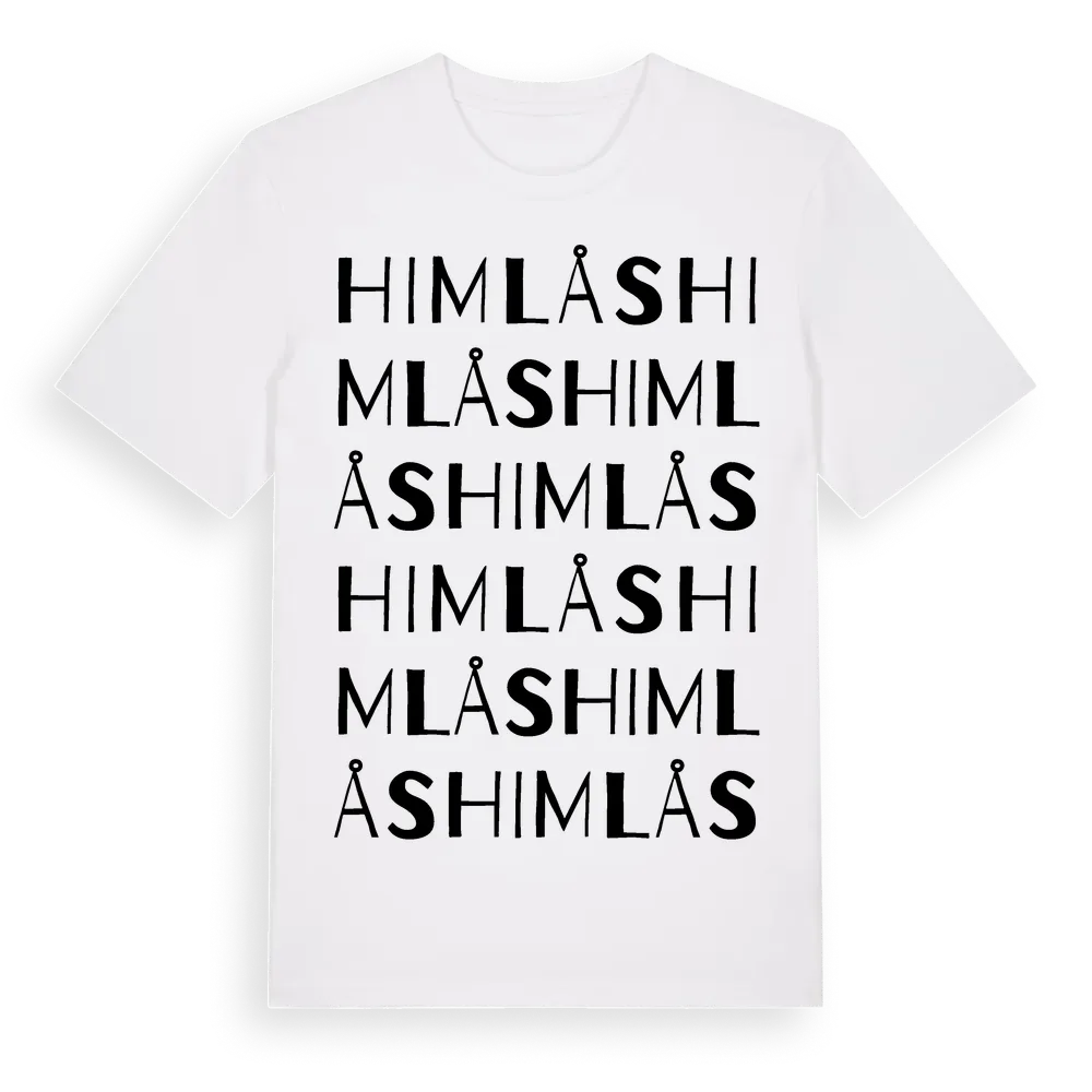 Himlås ordlek t-shirt är inspirerad av Himlås i Hallands län, Sverige. Tröjan är designad för dig som har en speciell koppling till platsen – oavsett om du bor här, har rötterna här eller bara älskar Himlås.