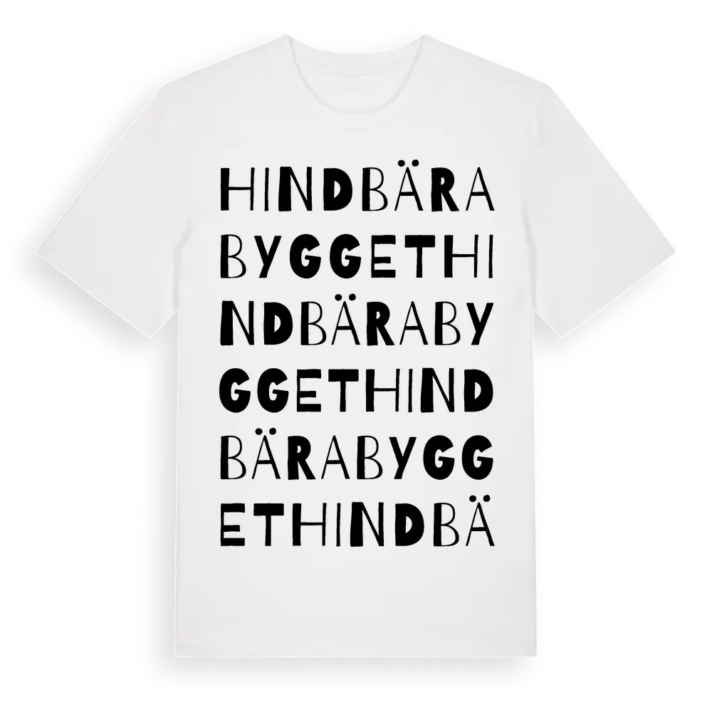 Hindbärabygget ordlek t-shirt är inspirerad av Hindbärabygget i Hallands län, Sverige. Tröjan är designad för dig som har en speciell koppling till platsen – oavsett om du bor här, har rötterna här eller bara älskar Hindbärabygget.