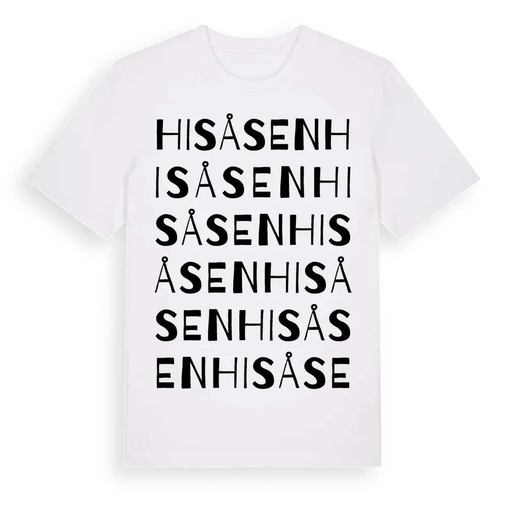 Hisåsen ordlek t-shirt är inspirerad av Hisåsen i Hallands län, Sverige. Tröjan är designad för dig som har en speciell koppling till platsen – oavsett om du bor här, har rötterna här eller bara älskar Hisåsen.