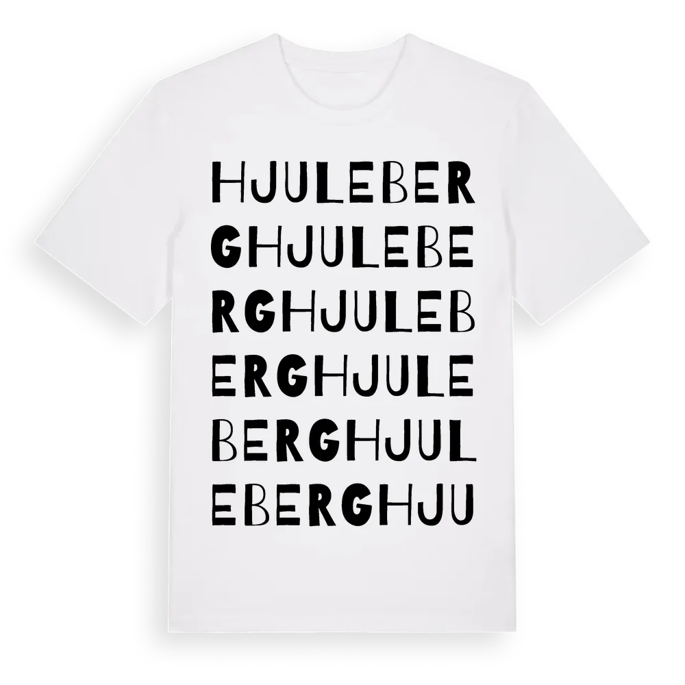 Hjuleberg ordlek t-shirt är inspirerad av Hjuleberg i Hallands län, Sverige. Tröjan är designad för dig som har en speciell koppling till platsen – oavsett om du bor här, har rötterna här eller bara älskar Hjuleberg.