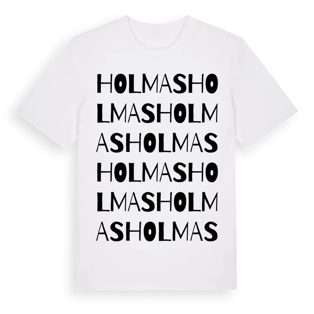 Holmas ordlek t-shirt är inspirerad av Holmas i Hallands län, Sverige. Tröjan är designad för dig som har en speciell koppling till platsen – oavsett om du bor här, har rötterna här eller bara älskar Holmas.