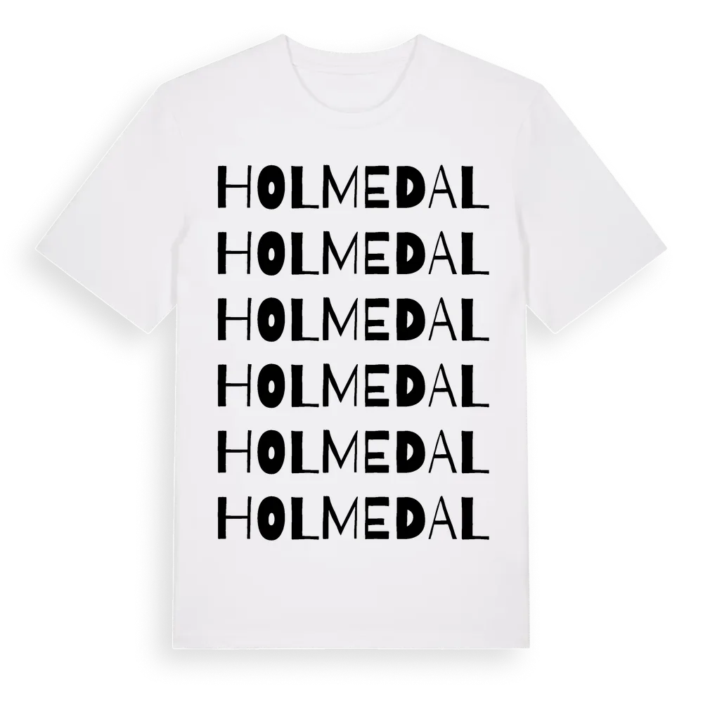 En ordlek byggd på Holmedals namn. Subtilt och klurig – ett motiv som bara de som verkligen känner platsen fullt ut förstår. Premium bomull, unisex – från Holmedal i Hallands län.