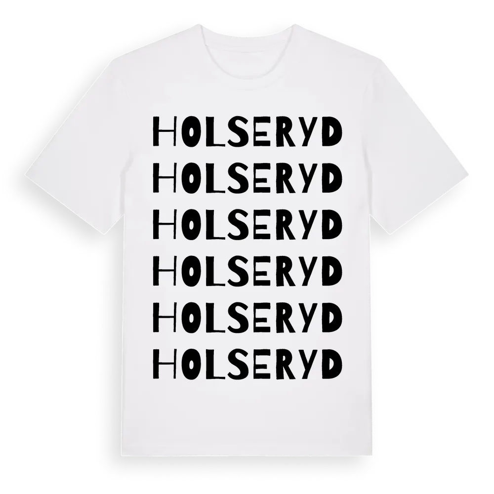 Holseryd ordlek t-shirt är inspirerad av Holseryd i Hallands län, Sverige. Tröjan är designad för dig som har en speciell koppling till platsen – oavsett om du bor här, har rötterna här eller bara älskar Holseryd.