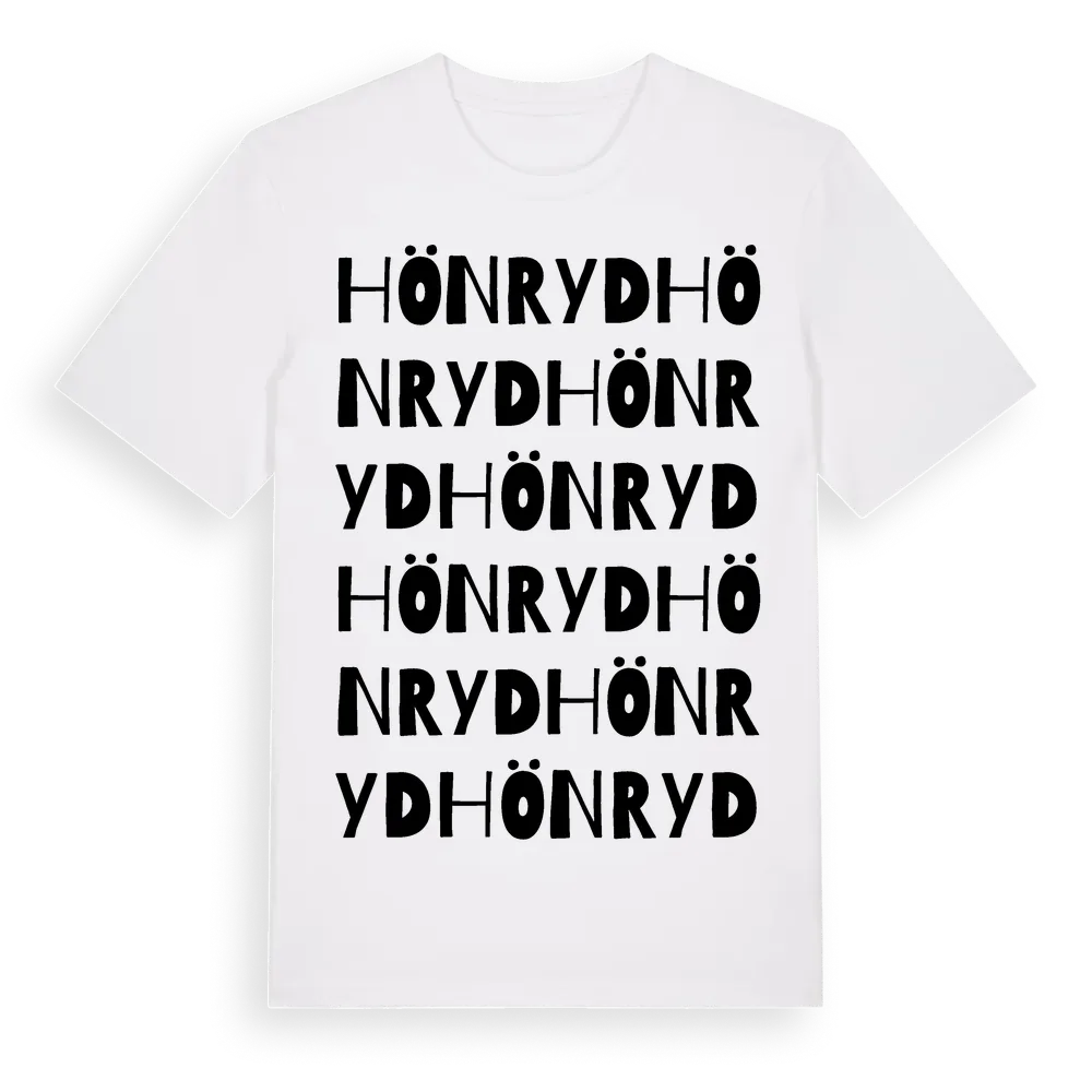 Hönryd ordlek t-shirt är inspirerad av byn Hönryd i Hallands län, Sverige. Tröjan är designad för dig som har en speciell koppling till platsen – oavsett om du bor här, har rötterna här eller bara älskar Hönryd.