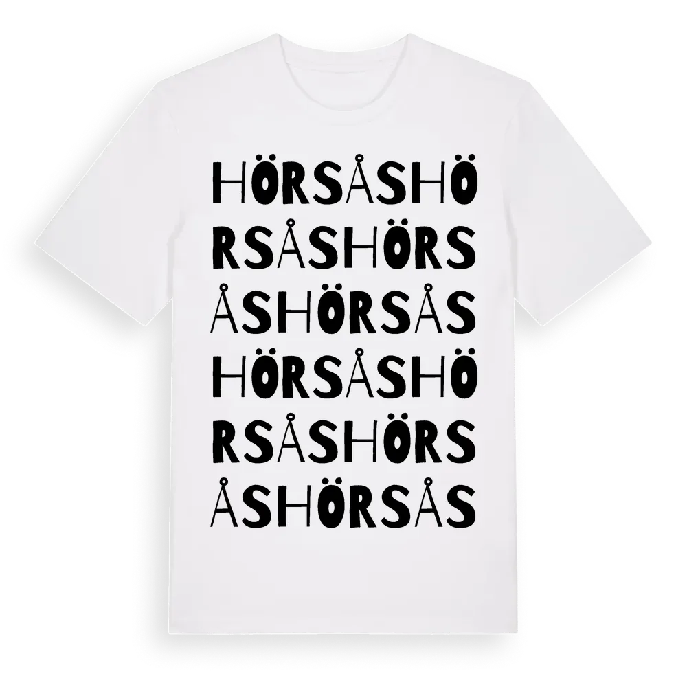 Hörsås ordlek t-shirt är inspirerad av byn Hörsås i Hallands län, Sverige. Tröjan är designad för dig som har en speciell koppling till platsen – oavsett om du bor här, har rötterna här eller bara älskar Hörsås.