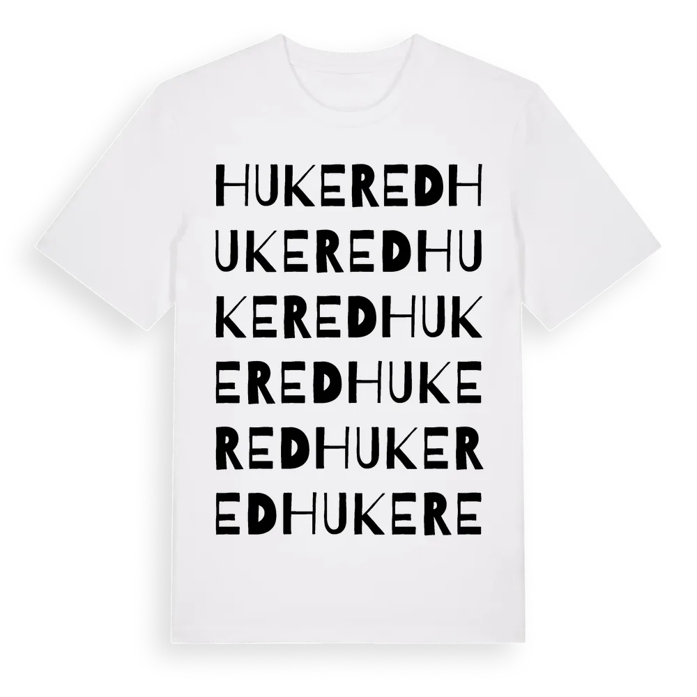 Hukered ordlek t-shirt är inspirerad av Hukered i Hallands län, Sverige. Tröjan är designad för dig som har en speciell koppling till platsen – oavsett om du bor här, har rötterna här eller bara älskar Hukered.