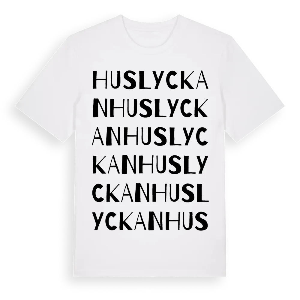 Huslyckan ordlek t-shirt är inspirerad av Huslyckan i Hallands län, Sverige. Tröjan är designad för dig som har en speciell koppling till platsen – oavsett om du bor här, har rötterna här eller bara älskar Huslyckan.