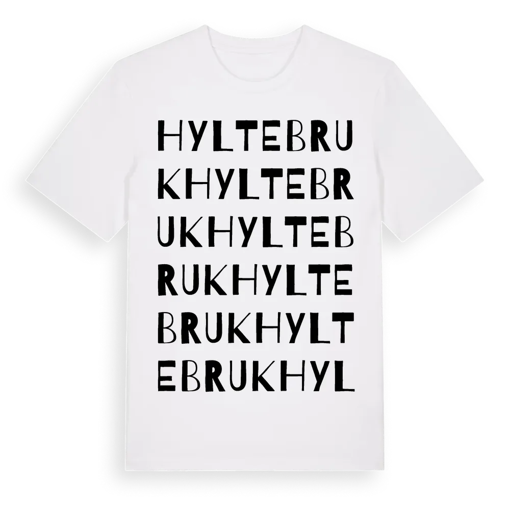 Hyltebruk ordlek t-shirt är inspirerad av staden Hyltebruk i Hallands län, Sverige. Tröjan är designad för dig som har en speciell koppling till platsen – oavsett om du bor här, har rötterna här eller bara älskar Hyltebruk.