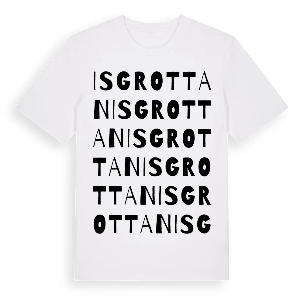 Isgrottan ordlek t-shirt är inspirerad av Isgrottan i Hallands län, Sverige. Tröjan är designad för dig som har en speciell koppling till platsen – oavsett om du bor här, har rötterna här eller bara älskar Isgrottan.