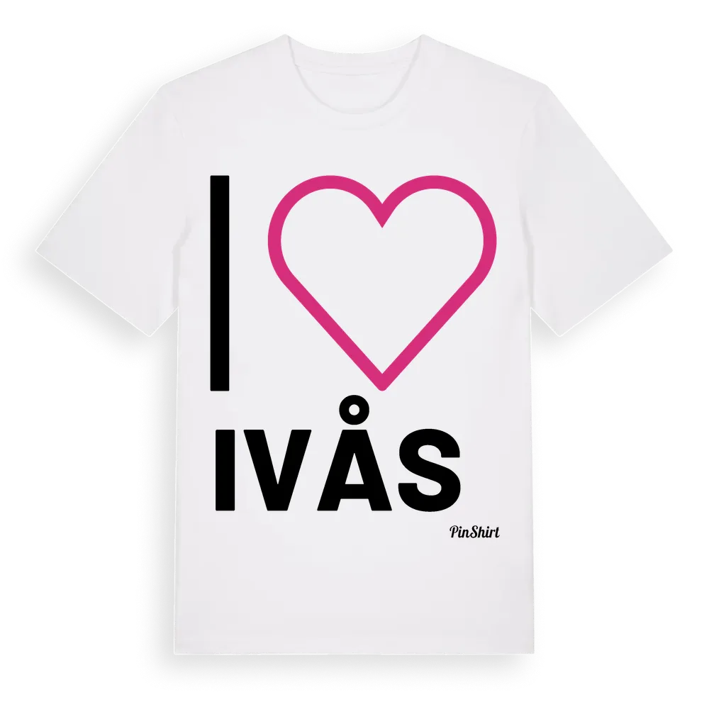 Det klassiska "I ❤ Ivås"-motivet i stort format som täcker hela bröstet. För dig som vill visa kärleken till Ivås på riktigt. Premium bomull, unisex – från Ivås i Hallands län.