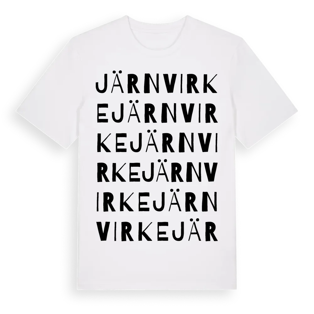 Järnvirke ordlek t-shirt är inspirerad av Järnvirke i Hallands län, Sverige. Tröjan är designad för dig som har en speciell koppling till platsen – oavsett om du bor här, har rötterna här eller bara älskar Järnvirke.