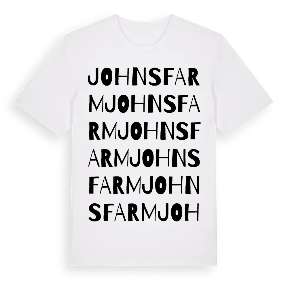 Johnsfarm ordlek t-shirt är inspirerad av Johnsfarm i Hallands län, Sverige. Tröjan är designad för dig som har en speciell koppling till platsen – oavsett om du bor här, har rötterna här eller bara älskar Johnsfarm.