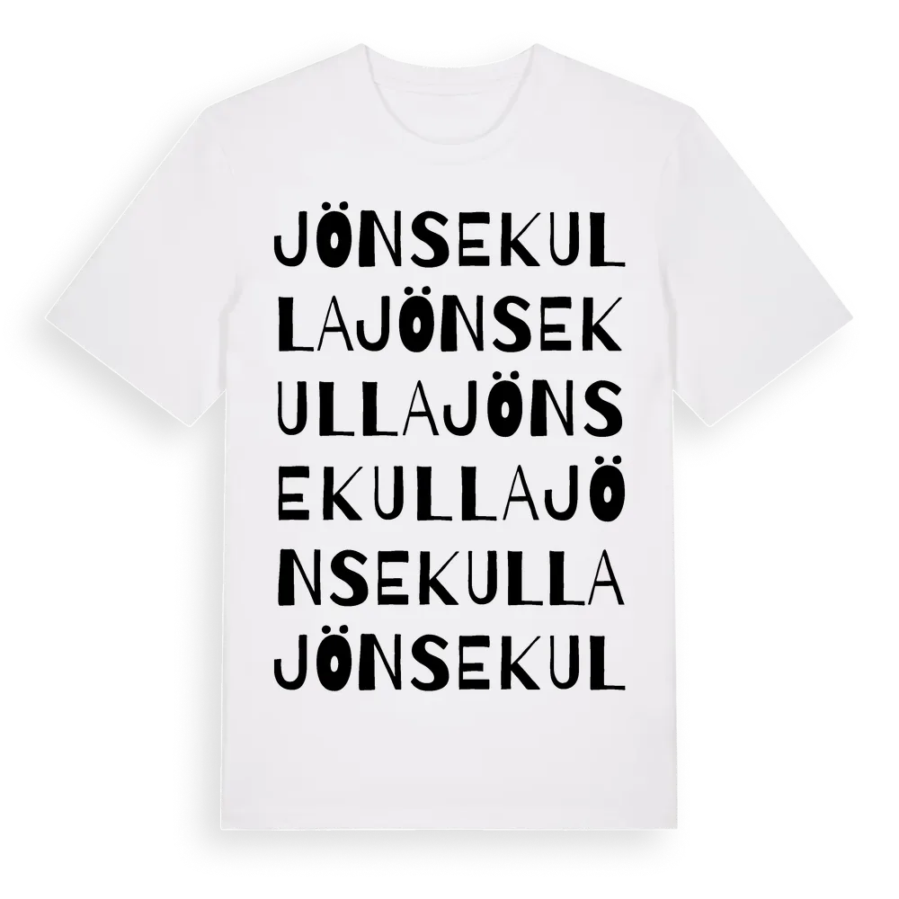 Jönsekulla ordlek t-shirt är inspirerad av Jönsekulla i Hallands län, Sverige. Tröjan är designad för dig som har en speciell koppling till platsen – oavsett om du bor här, har rötterna här eller bara älskar Jönsekulla.