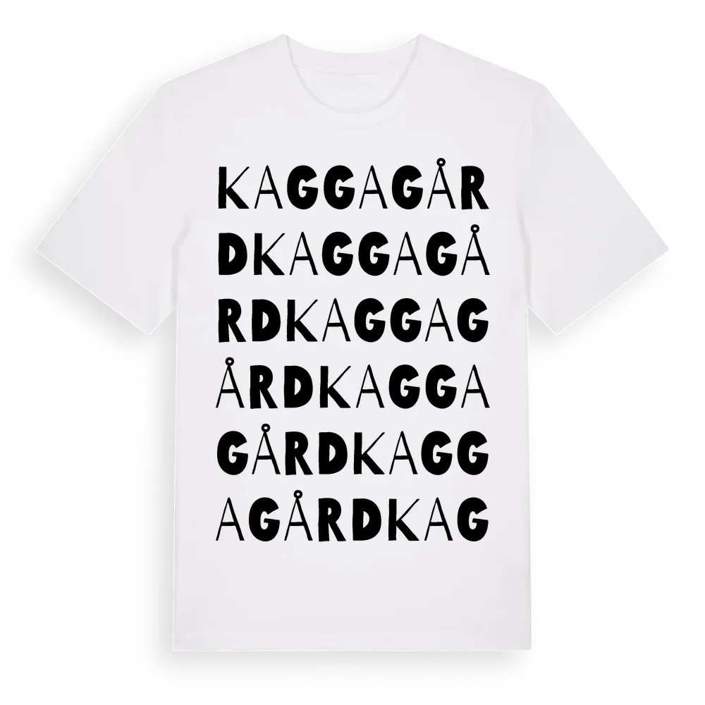 Kaggagård ordlek t-shirt är inspirerad av Kaggagård i Hallands län, Sverige. Tröjan är designad för dig som har en speciell koppling till platsen – oavsett om du bor här, har rötterna här eller bara älskar Kaggagård.