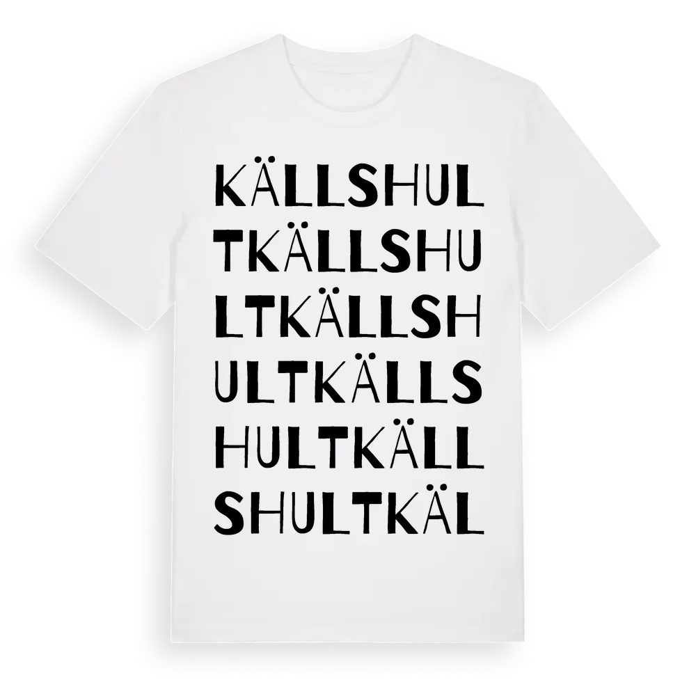 Källshult ordlek t-shirt är inspirerad av Källshult i Hallands län, Sverige. Tröjan är designad för dig som har en speciell koppling till platsen – oavsett om du bor här, har rötterna här eller bara älskar Källshult.