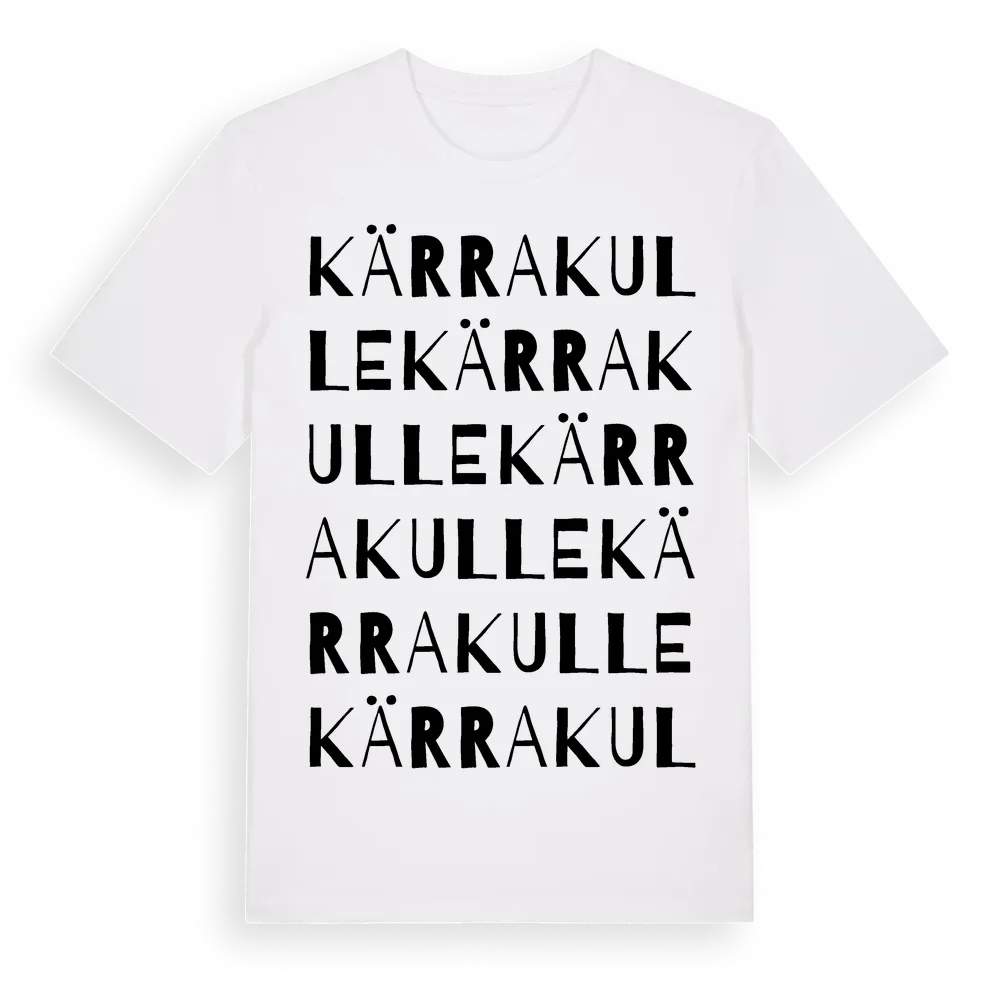 Kärrakulle ordlek t-shirt är inspirerad av Kärrakulle i Hallands län, Sverige. Tröjan är designad för dig som har en speciell koppling till platsen – oavsett om du bor här, har rötterna här eller bara älskar Kärrakulle.