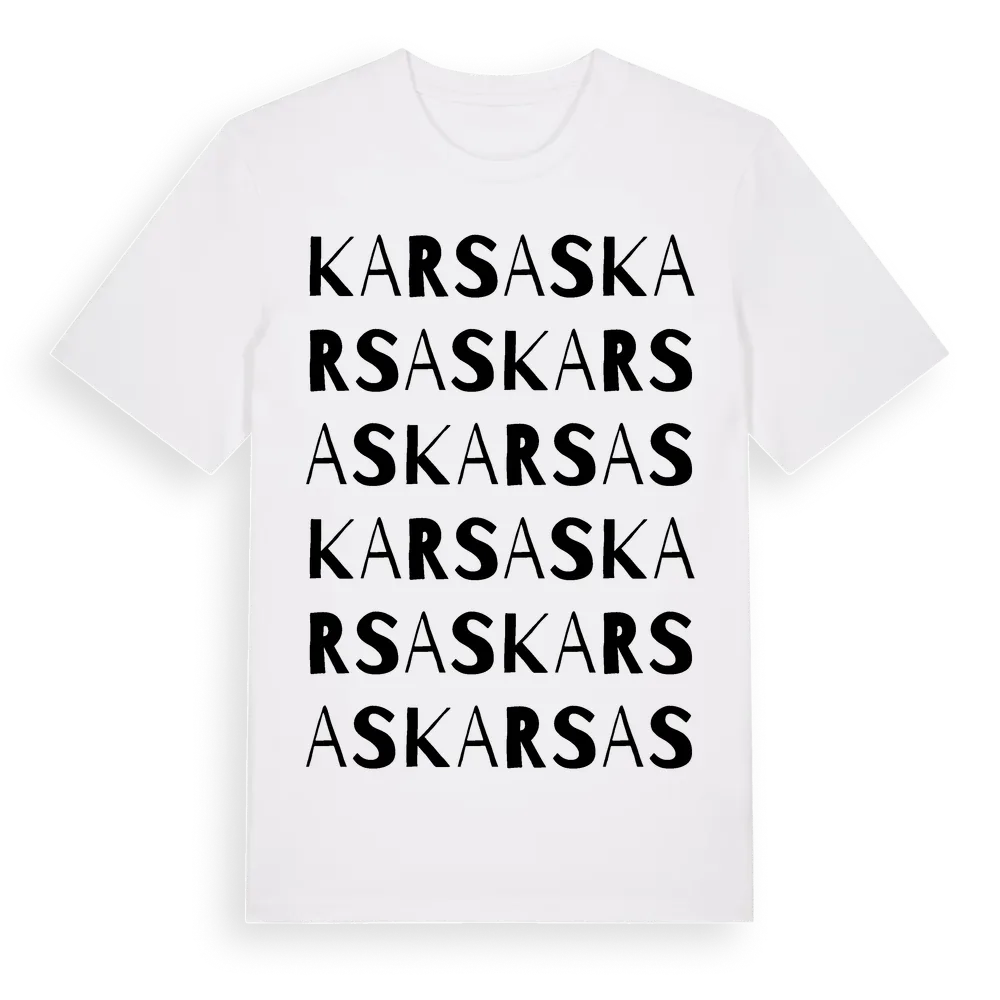 Karsas ordlek t-shirt är inspirerad av Karsas i Hallands län, Sverige. Tröjan är designad för dig som har en speciell koppling till platsen – oavsett om du bor här, har rötterna här eller bara älskar Karsas.