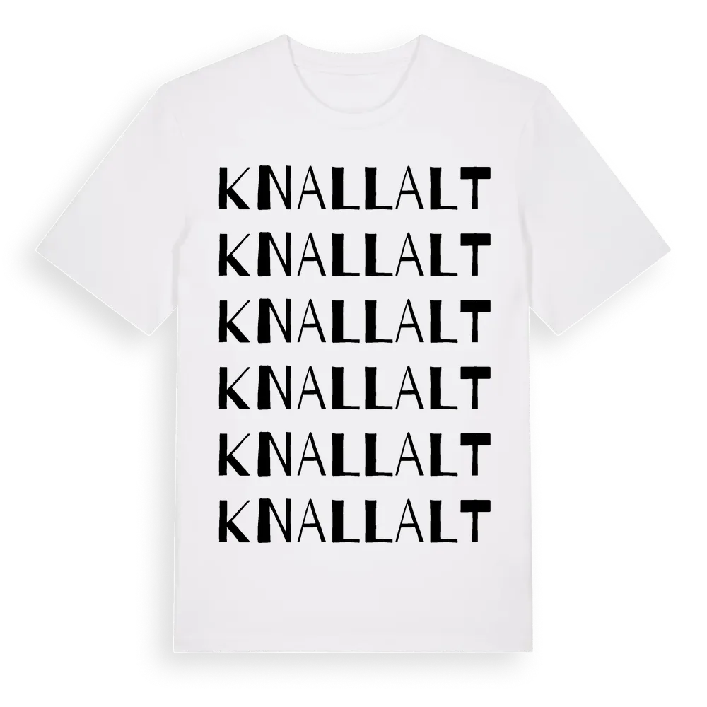 En ordlek byggd på Knallalts namn. Subtilt och klurig – ett motiv som bara de som verkligen känner platsen fullt ut förstår. Premium bomull, unisex – från Knallalt i Hallands län.