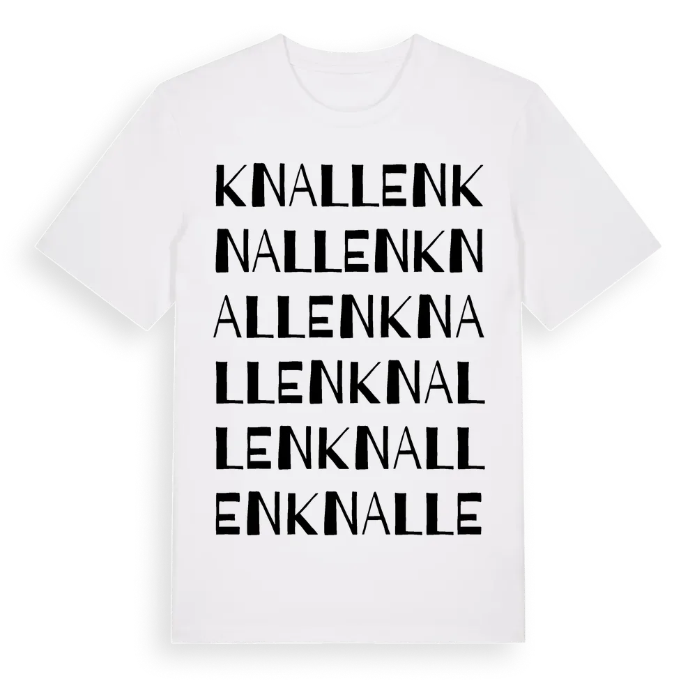 Knallen ordlek t-shirt är inspirerad av Knallen i Hallands län, Sverige. Tröjan är designad för dig som har en speciell koppling till platsen – oavsett om du bor här, har rötterna här eller bara älskar Knallen.
