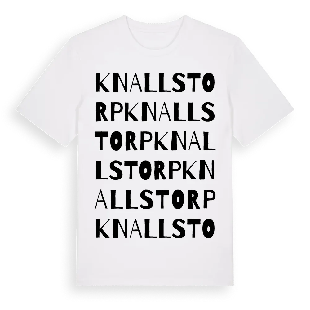 Knallstorp ordlek t-shirt är inspirerad av Knallstorp i Hallands län, Sverige. Tröjan är designad för dig som har en speciell koppling till platsen – oavsett om du bor här, har rötterna här eller bara älskar Knallstorp.