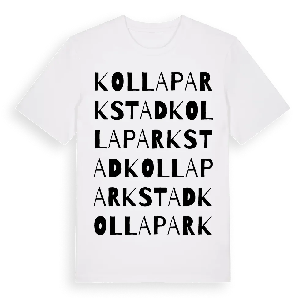 Kolla Parkstad ordlek t-shirt är inspirerad av stadsdelen Kolla Parkstad i Hallands län, Sverige. Tröjan är designad för dig som har en speciell koppling till platsen – oavsett om du bor här, har rötterna här eller bara älskar Kolla Parkstad.