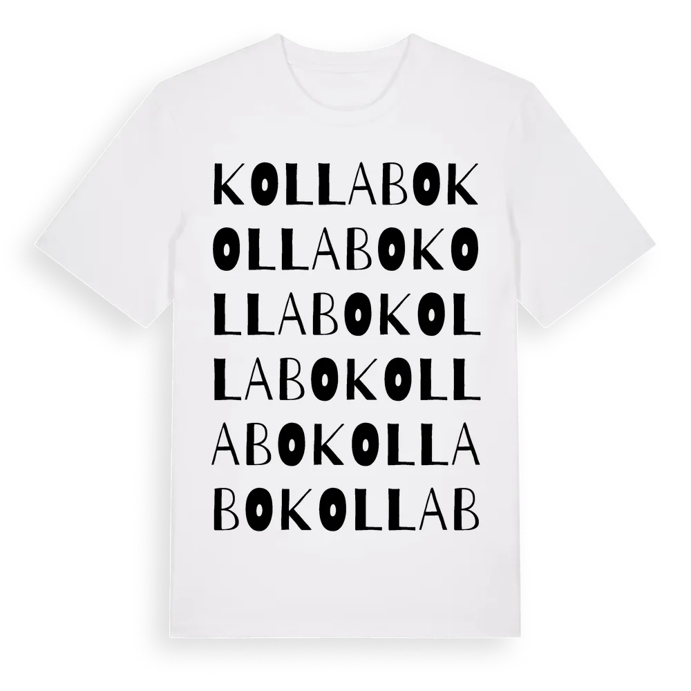 Kollabo ordlek t-shirt är inspirerad av Kollabo i Hallands län, Sverige. Tröjan är designad för dig som har en speciell koppling till platsen – oavsett om du bor här, har rötterna här eller bara älskar Kollabo.