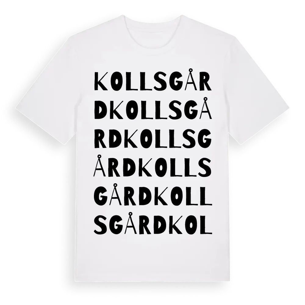 Kollsgård ordlek t-shirt är inspirerad av Kollsgård i Hallands län, Sverige. Tröjan är designad för dig som har en speciell koppling till platsen – oavsett om du bor här, har rötterna här eller bara älskar Kollsgård.