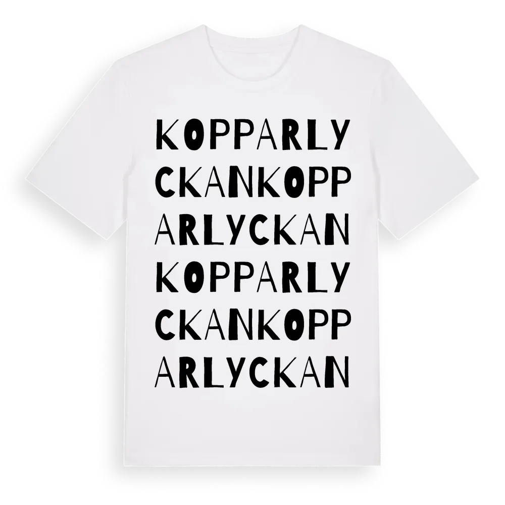 Kopparlyckan ordlek t-shirt är inspirerad av Kopparlyckan i Hallands län, Sverige. Tröjan är designad för dig som har en speciell koppling till platsen – oavsett om du bor här, har rötterna här eller bara älskar Kopparlyckan.