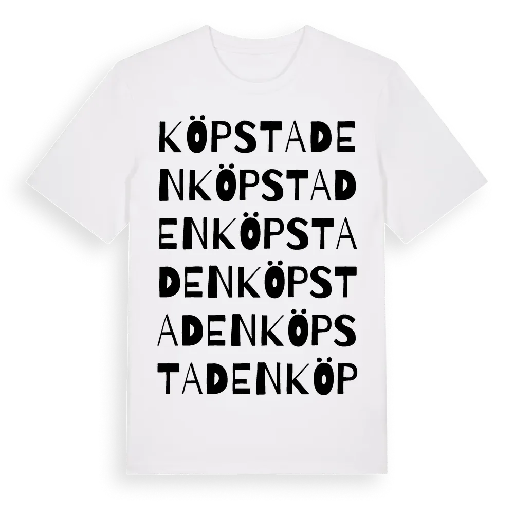 Köpstaden ordlek t-shirt är inspirerad av Köpstaden i Hallands län, Sverige. Tröjan är designad för dig som har en speciell koppling till platsen – oavsett om du bor här, har rötterna här eller bara älskar Köpstaden.