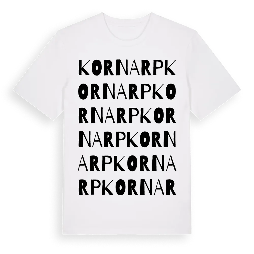 Kornarp ordlek t-shirt är inspirerad av Kornarp i Hallands län, Sverige. Tröjan är designad för dig som har en speciell koppling till platsen – oavsett om du bor här, har rötterna här eller bara älskar Kornarp.