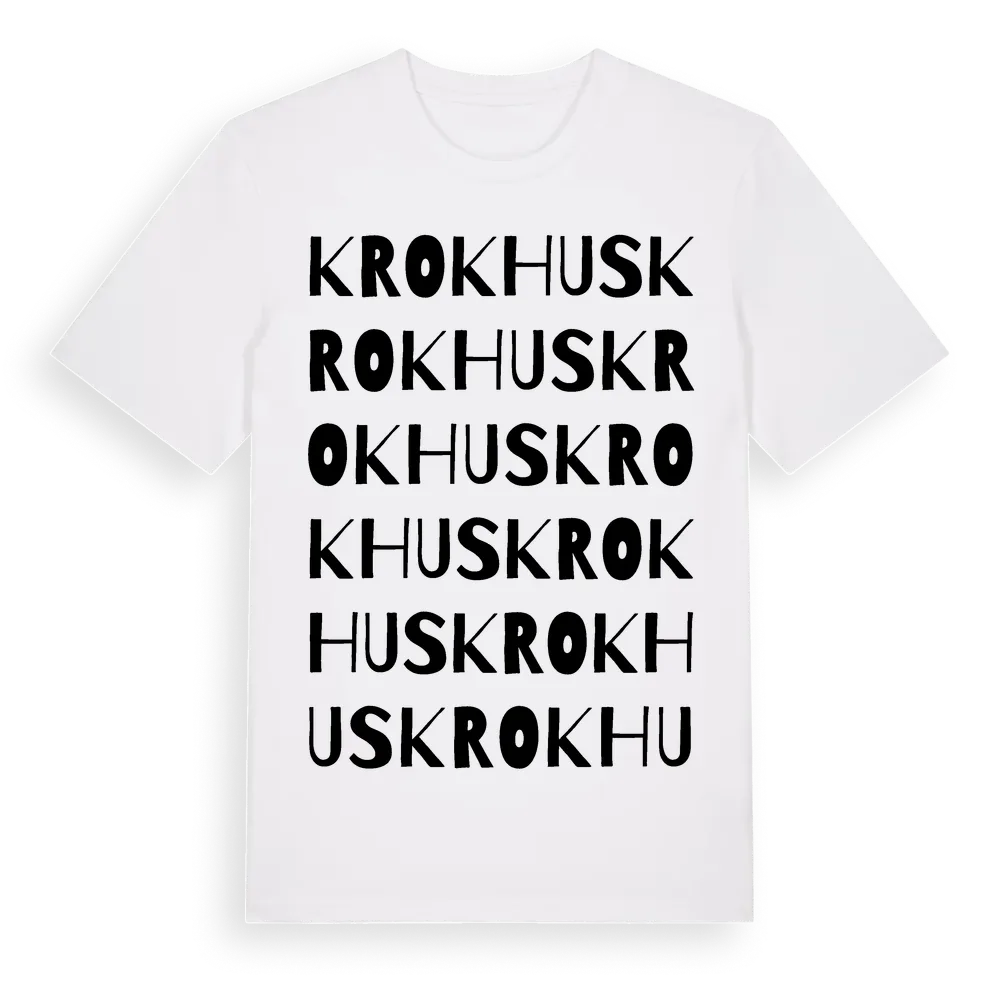Krokhus ordlek t-shirt är inspirerad av Krokhus i Hallands län, Sverige. Tröjan är designad för dig som har en speciell koppling till platsen – oavsett om du bor här, har rötterna här eller bara älskar Krokhus.