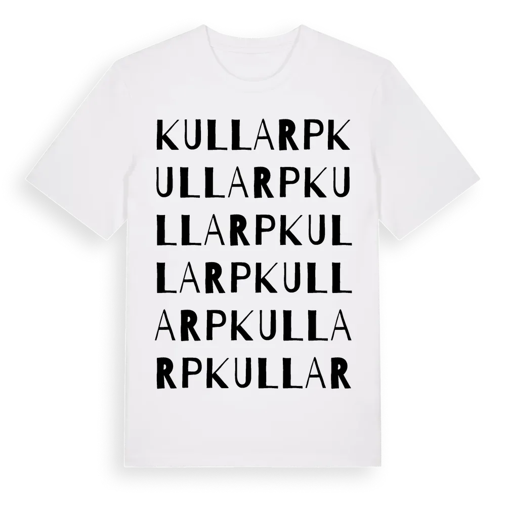 Kullarp ordlek t-shirt är inspirerad av Kullarp i Hallands län, Sverige. Tröjan är designad för dig som har en speciell koppling till platsen – oavsett om du bor här, har rötterna här eller bara älskar Kullarp.