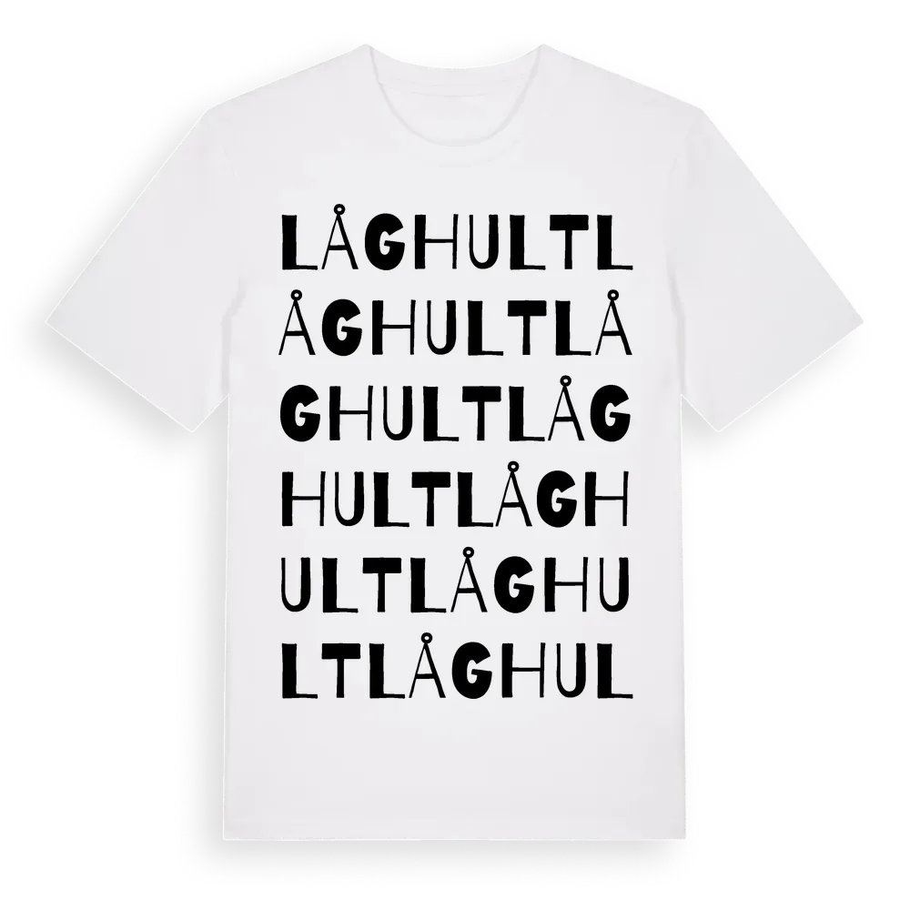 Låghult ordlek t-shirt är inspirerad av Låghult i Hallands län, Sverige. Tröjan är designad för dig som har en speciell koppling till platsen – oavsett om du bor här, har rötterna här eller bara älskar Låghult.