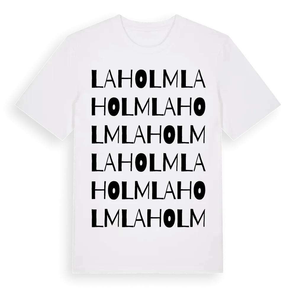 Laholm ordlek t-shirt är inspirerad av staden Laholm i Hallands län, Sverige. Tröjan är designad för dig som har en speciell koppling till platsen – oavsett om du bor här, har rötterna här eller bara älskar Laholm.