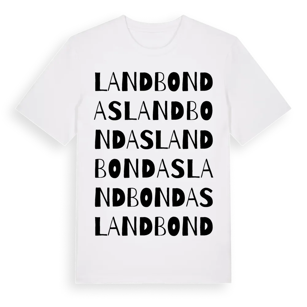 Landbondas ordlek t-shirt är inspirerad av Landbondas i Hallands län, Sverige. Tröjan är designad för dig som har en speciell koppling till platsen – oavsett om du bor här, har rötterna här eller bara älskar Landbondas.