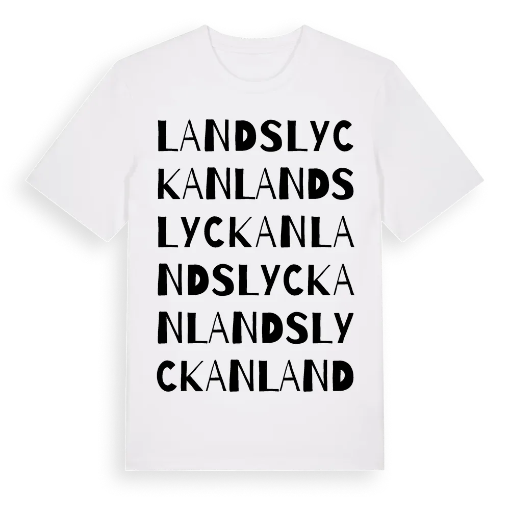 Landslyckan ordlek t-shirt är inspirerad av Landslyckan i Hallands län, Sverige. Tröjan är designad för dig som har en speciell koppling till platsen – oavsett om du bor här, har rötterna här eller bara älskar Landslyckan.