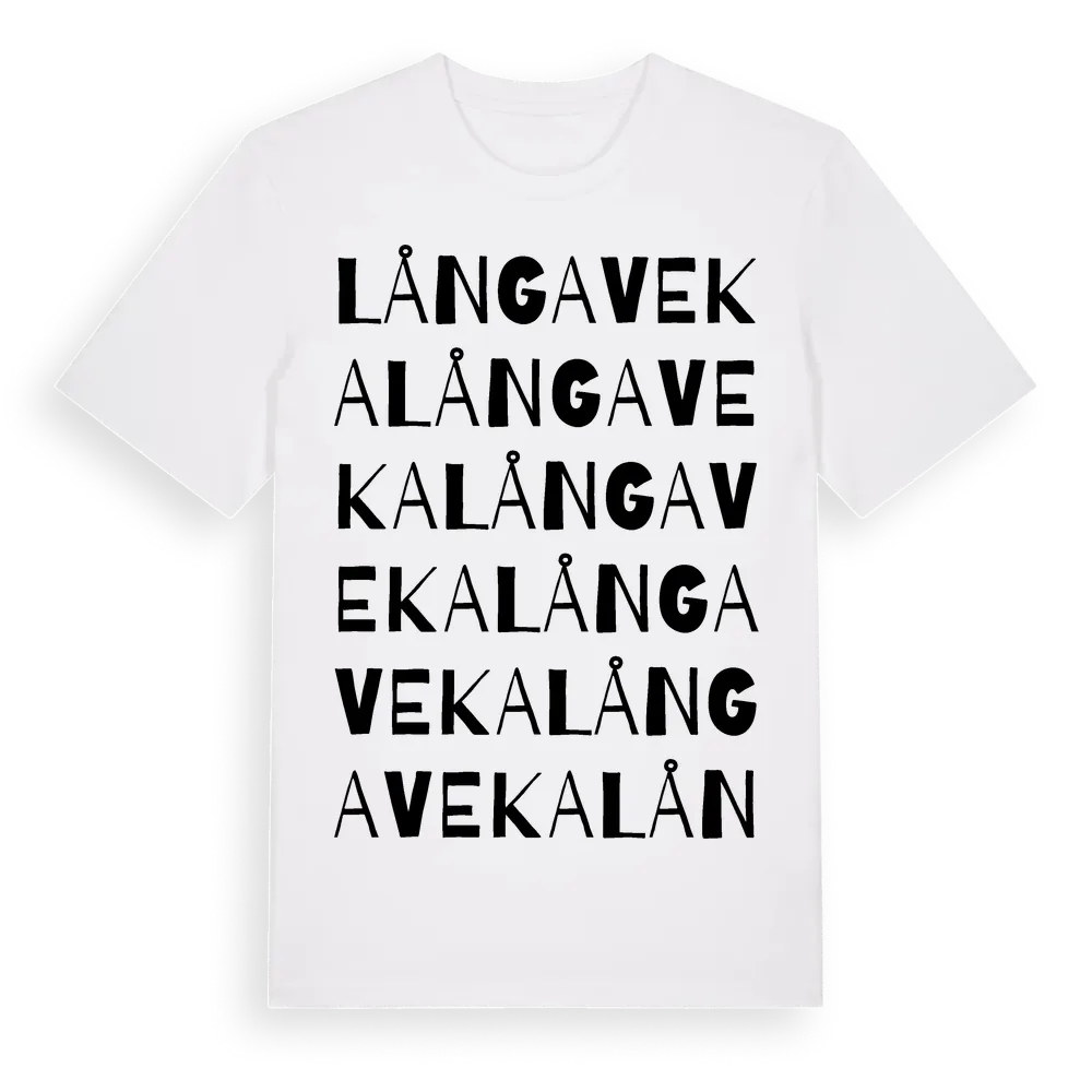 Långaveka ordlek t-shirt är inspirerad av Långaveka i Hallands län, Sverige. Tröjan är designad för dig som har en speciell koppling till platsen – oavsett om du bor här, har rötterna här eller bara älskar Långaveka.