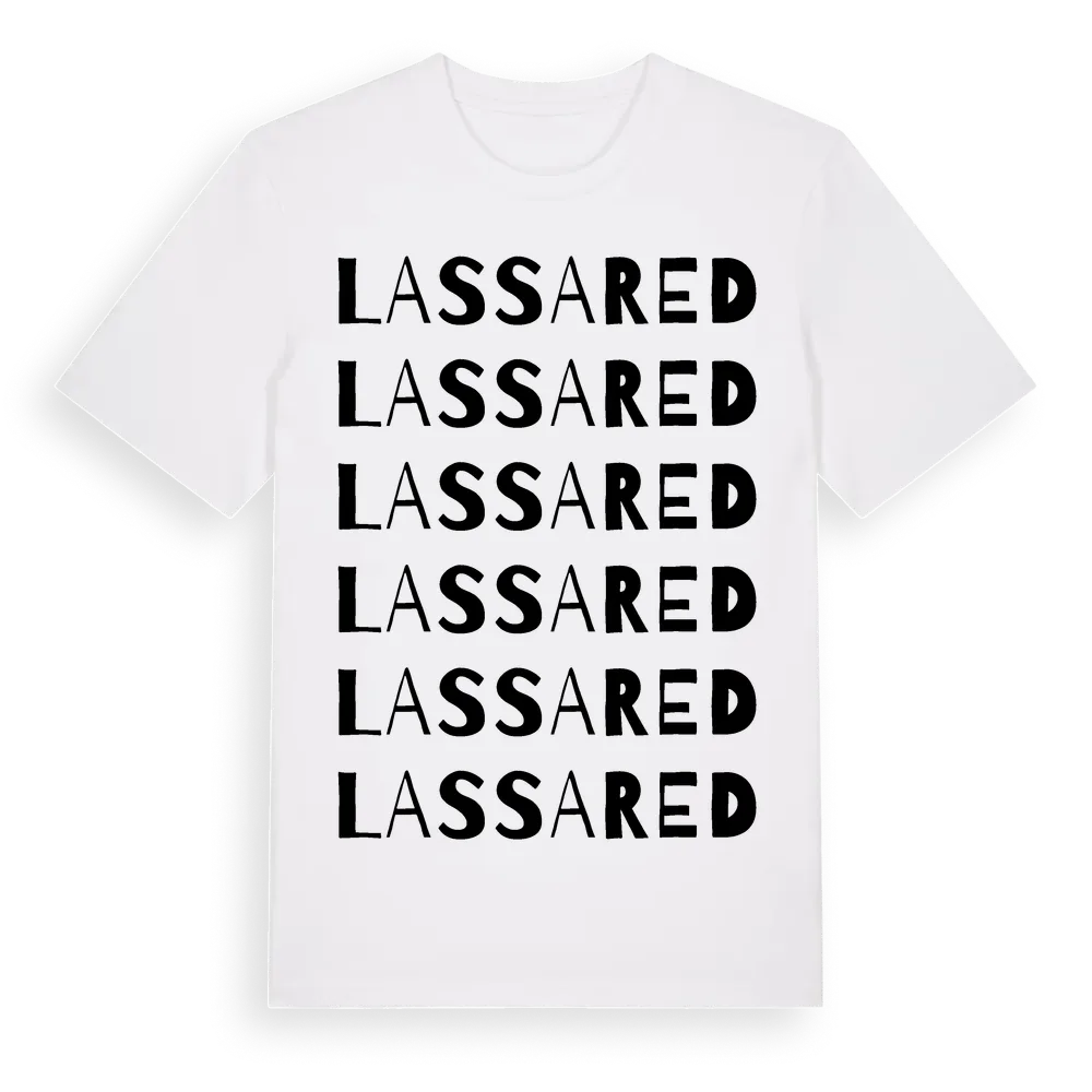 En ordlek byggd på Lassareds namn. Subtilt och klurig – ett motiv som bara de som verkligen känner platsen fullt ut förstår. Premium bomull, unisex – från Lassared i Hallands län.