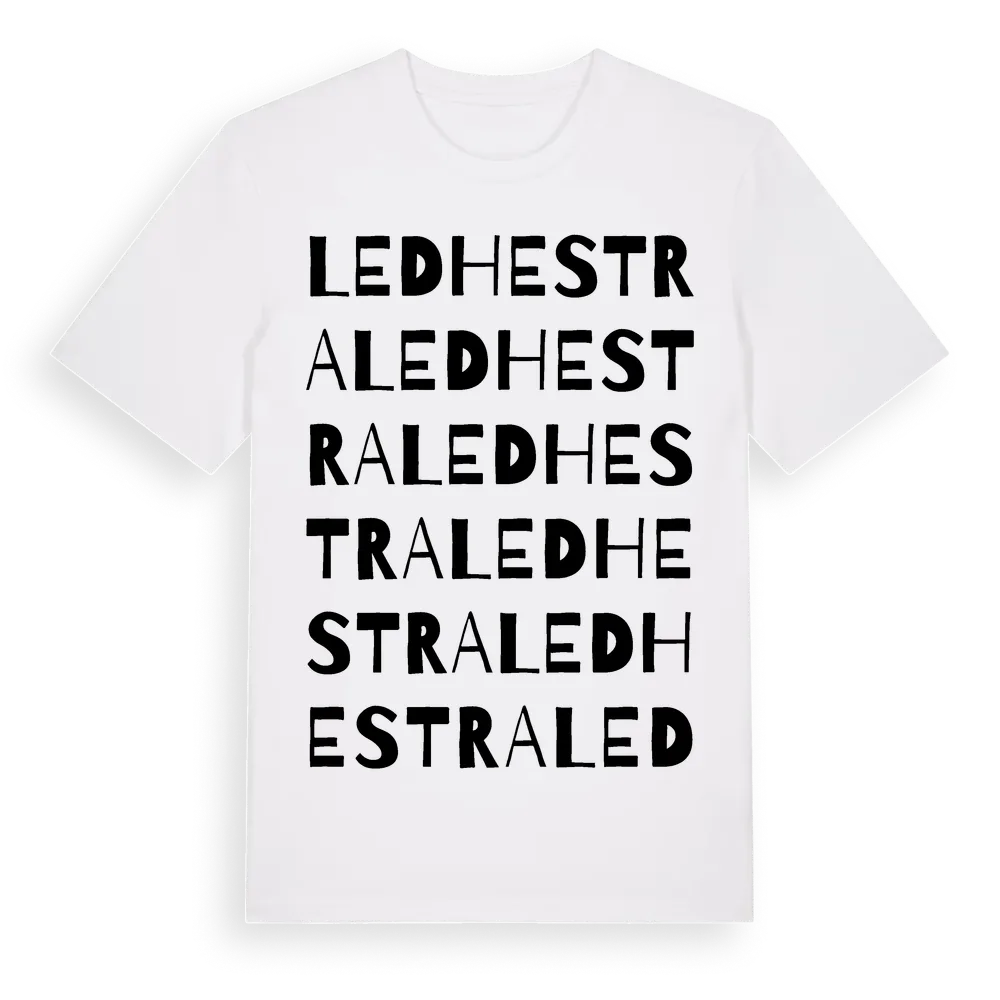 Ledhestra ordlek t-shirt är inspirerad av Ledhestra i Hallands län, Sverige. Tröjan är designad för dig som har en speciell koppling till platsen – oavsett om du bor här, har rötterna här eller bara älskar Ledhestra.