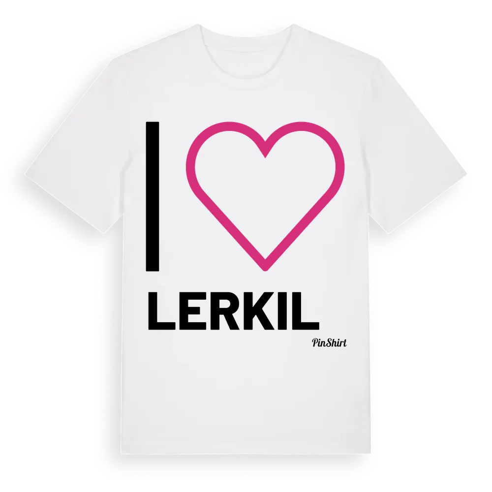 Det klassiska "I ❤ Lerkil"-motivet i stort format som täcker hela bröstet. För dig som vill visa kärleken till Lerkil på riktigt. Premium bomull, unisex – från byn Lerkil i Hallands län.