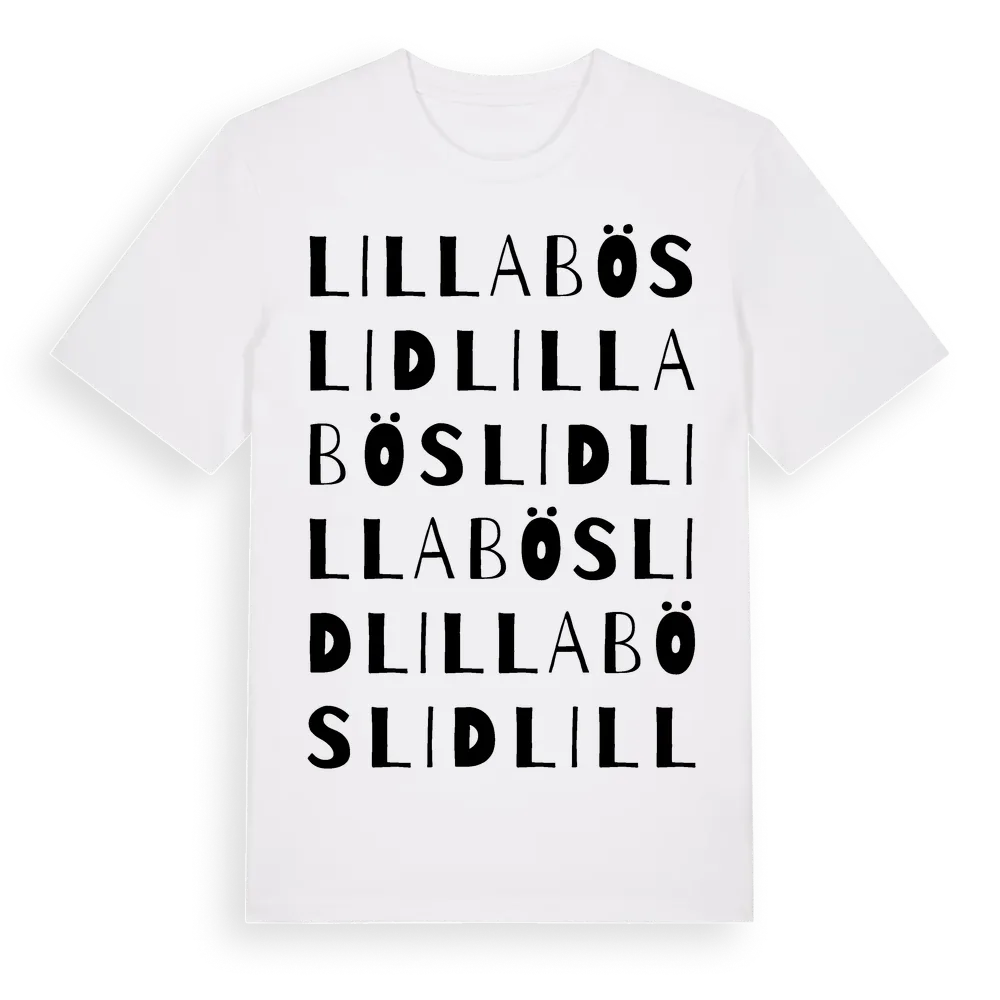 Lilla Böslid ordlek t-shirt är inspirerad av Lilla Böslid i Hallands län, Sverige. Tröjan är designad för dig som har en speciell koppling till platsen – oavsett om du bor här, har rötterna här eller bara älskar Lilla Böslid.