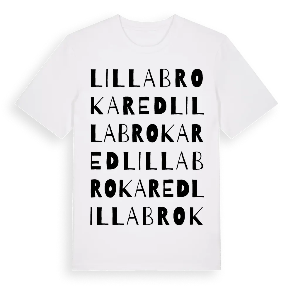 Lilla Brokared ordlek t-shirt är inspirerad av Lilla Brokared i Hallands län, Sverige. Tröjan är designad för dig som har en speciell koppling till platsen – oavsett om du bor här, har rötterna här eller bara älskar Lilla Brokared.