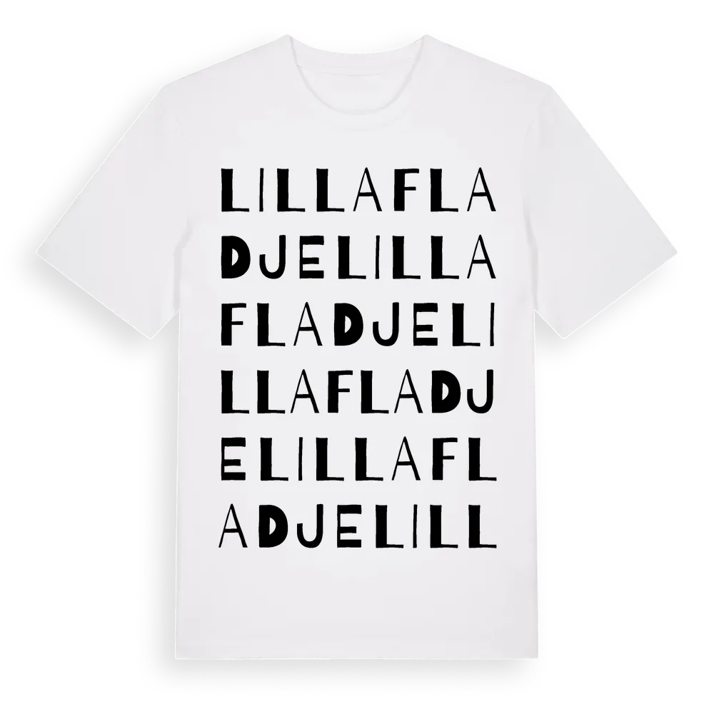 Lilla Fladje ordlek t-shirt är inspirerad av Lilla Fladje i Hallands län, Sverige. Tröjan är designad för dig som har en speciell koppling till platsen – oavsett om du bor här, har rötterna här eller bara älskar Lilla Fladje.