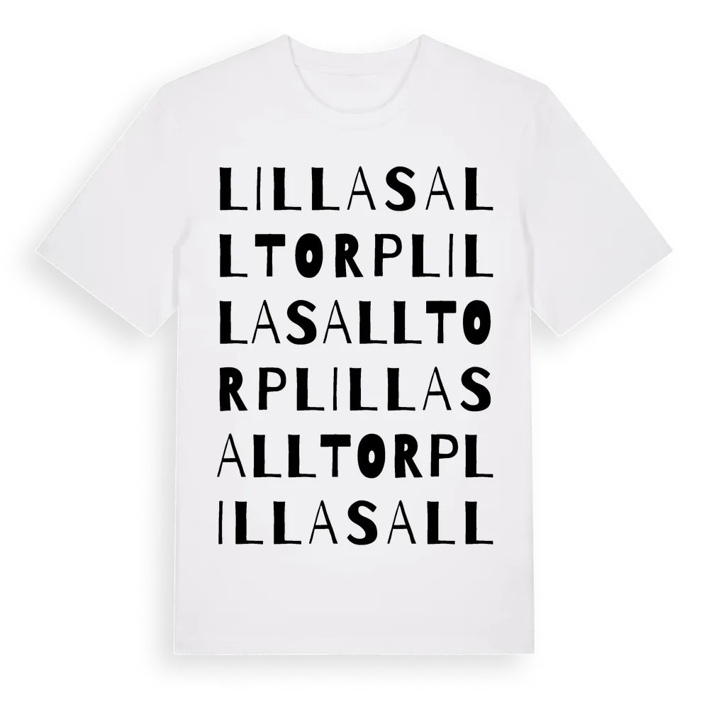 Lilla Salltorp ordlek t-shirt är inspirerad av Lilla Salltorp i Hallands län, Sverige. Tröjan är designad för dig som har en speciell koppling till platsen – oavsett om du bor här, har rötterna här eller bara älskar Lilla Salltorp.