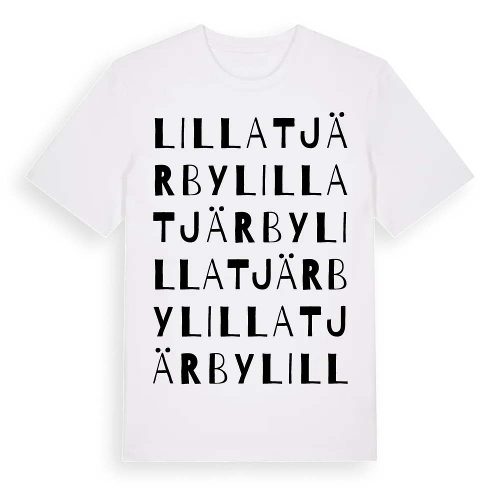 Lilla Tjärby ordlek t-shirt är inspirerad av byn Lilla Tjärby i Hallands län, Sverige. Tröjan är designad för dig som har en speciell koppling till platsen – oavsett om du bor här, har rötterna här eller bara älskar Lilla Tjärby.