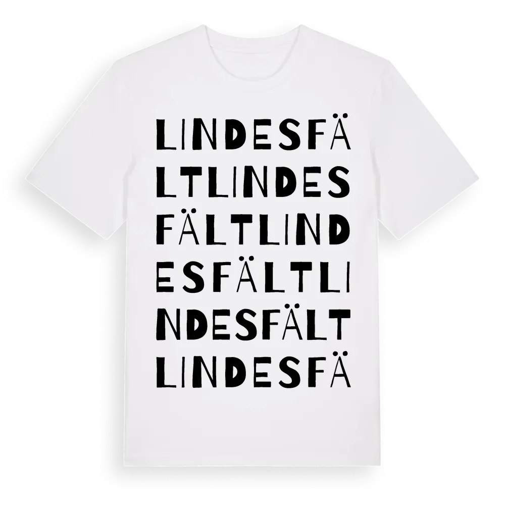 Lindesfält ordlek t-shirt är inspirerad av Lindesfält i Hallands län, Sverige. Tröjan är designad för dig som har en speciell koppling till platsen – oavsett om du bor här, har rötterna här eller bara älskar Lindesfält.