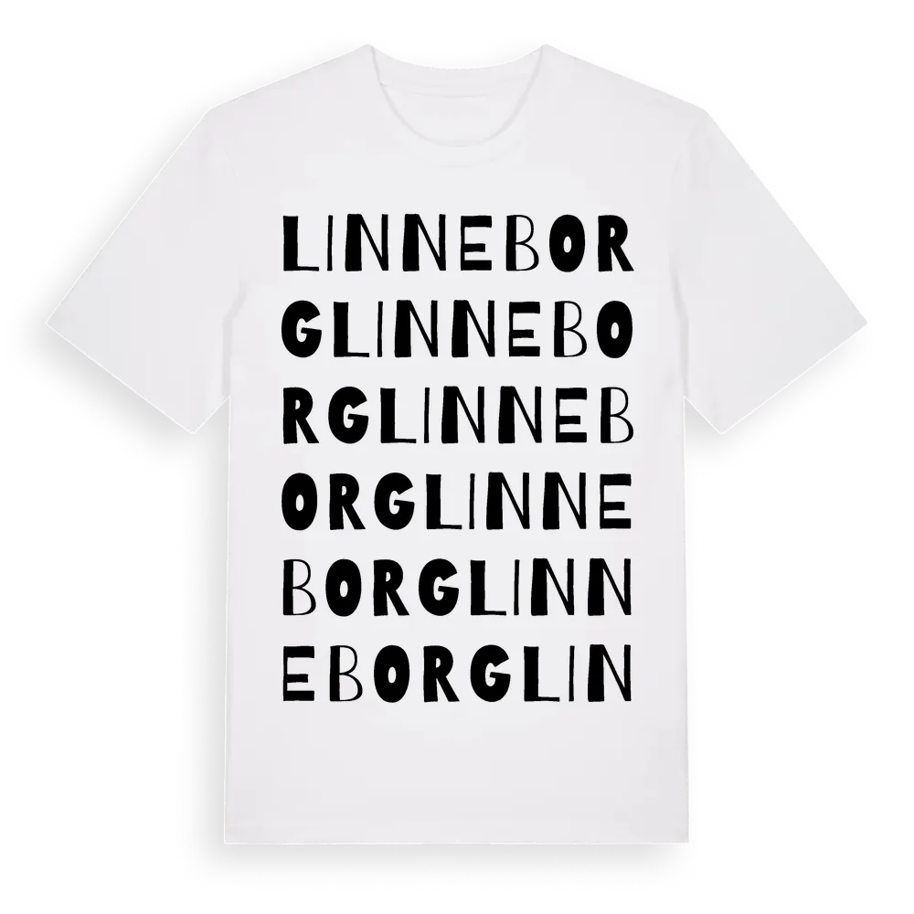 Linneborg ordlek t-shirt är inspirerad av Linneborg i Hallands län, Sverige. Tröjan är designad för dig som har en speciell koppling till platsen – oavsett om du bor här, har rötterna här eller bara älskar Linneborg.