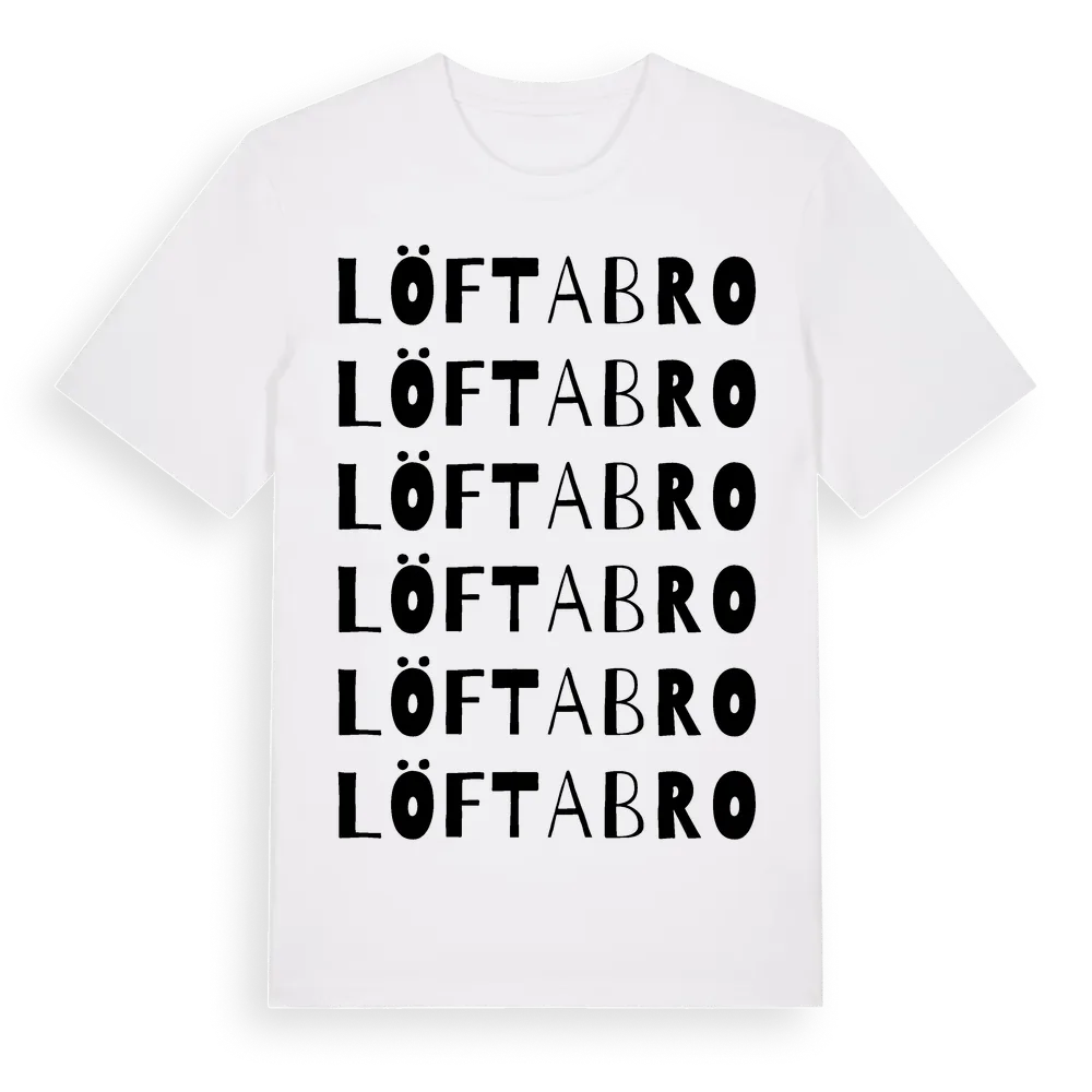 Löftabro ordlek t-shirt är inspirerad av Löftabro i Hallands län, Sverige. Tröjan är designad för dig som har en speciell koppling till platsen – oavsett om du bor här, har rötterna här eller bara älskar Löftabro.